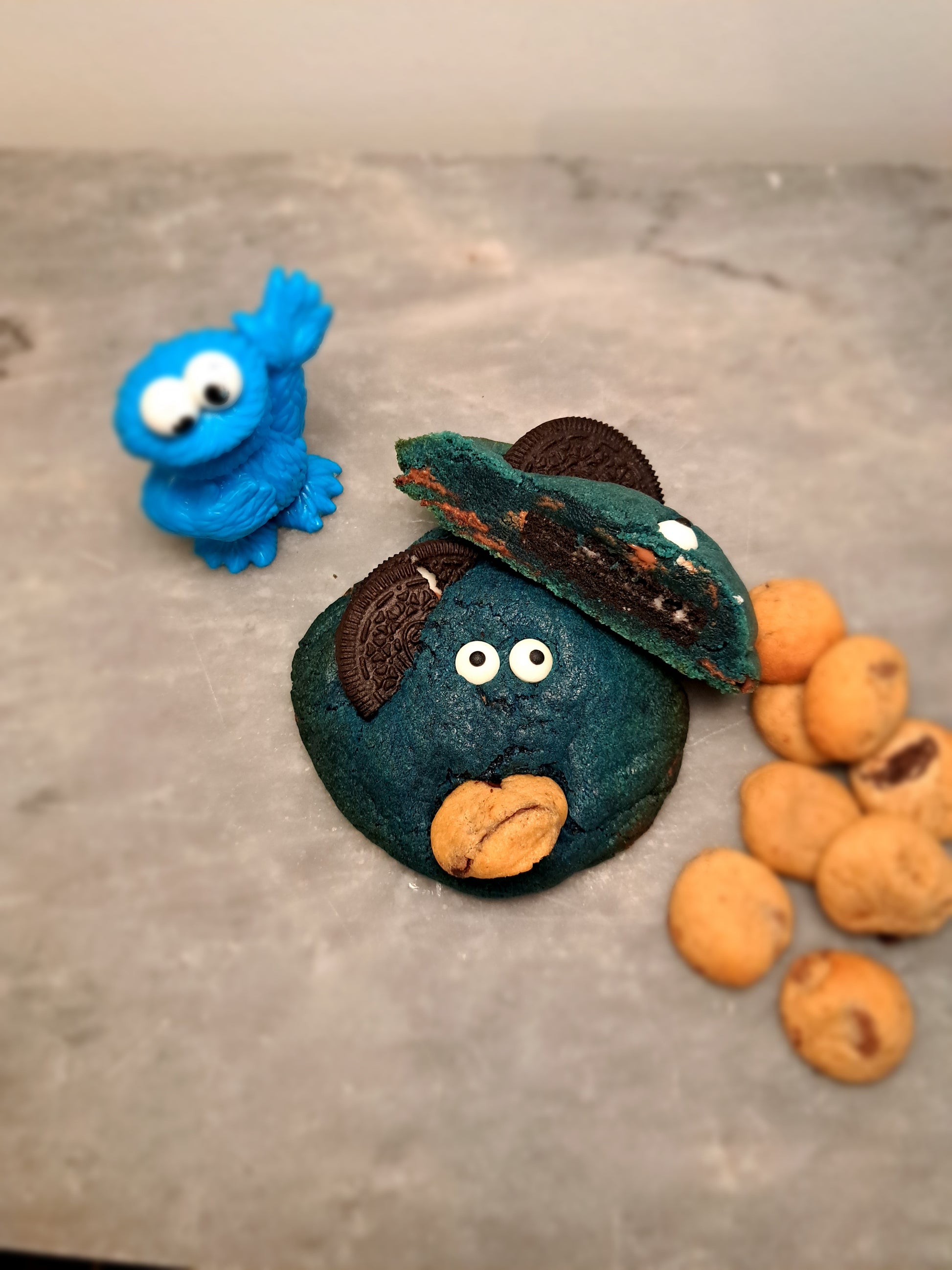 Heerlijk kinderlijk, Cookiemonster! Ons cookierecept met melkchocolade, gevuld met Oreo en afgewerkt met... nog meer cookies!